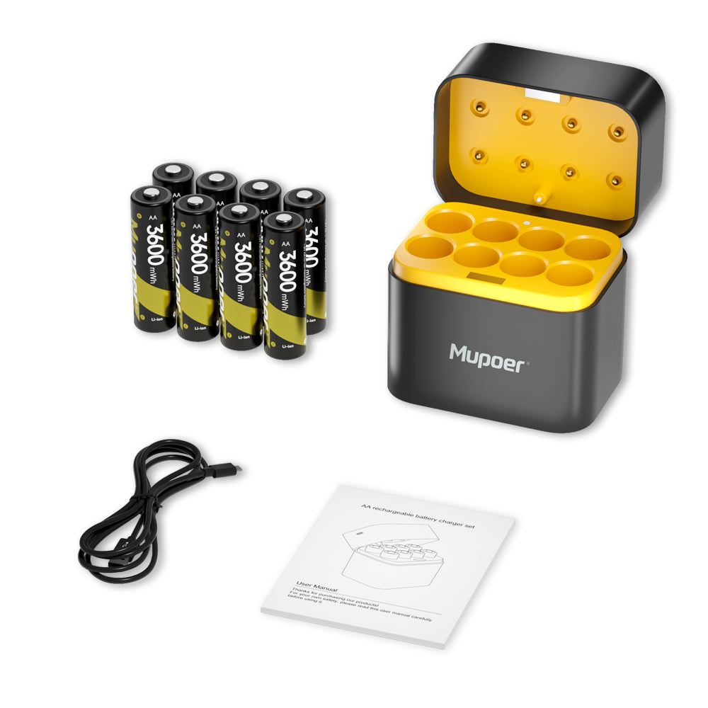Mupoer® PowerPro AA Li-ion Batteries - 3600mWh 1.5V Rechargeable